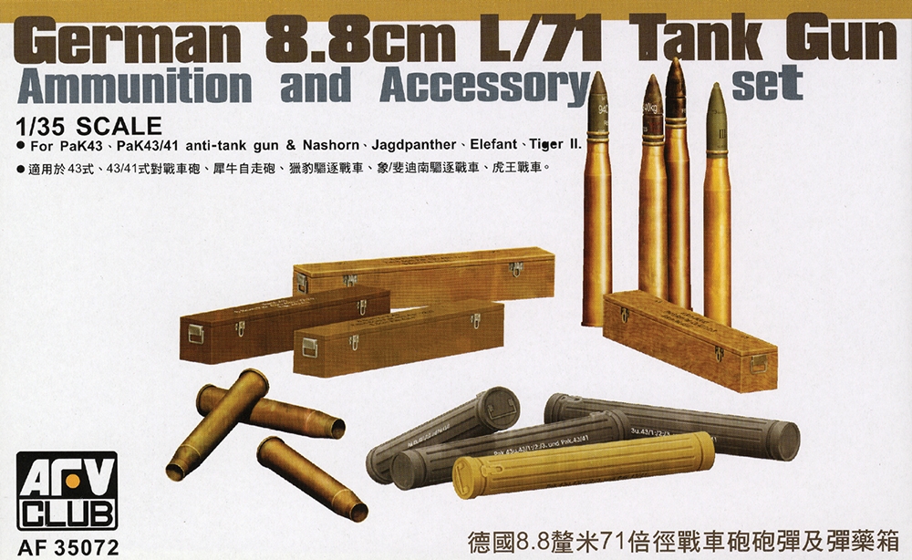 German 8.8cm L/71 tank gun ammunition and accessory set. 1:35 scale from AFV Club.