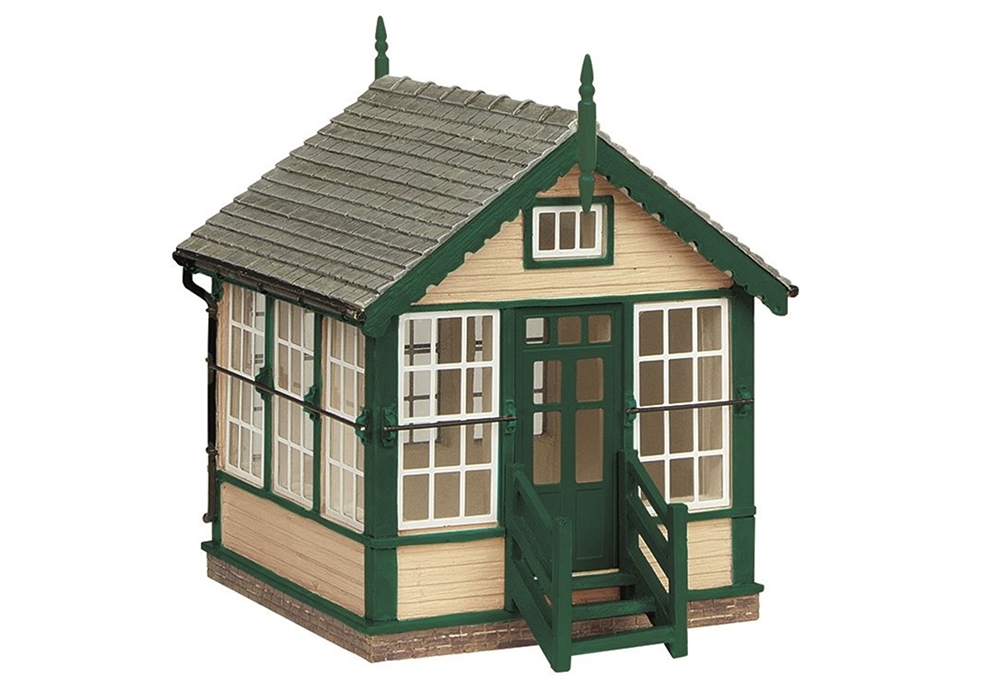 In the days before railway signalling became controlled from centralised locations, many railway stations would have signal boxes placed at the ends of platforms to allow staff to control the movement of railway vehicles and rolling stock around the station. This Platform Mounted Signal Box model from Scenecraft is decorated in cream with green highlights and can be used on many steam era layouts.