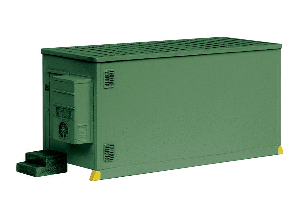 Relocatable Equipment Buildings are used next to railway lines throughout the country to house critical railway equipment and control systems. This model from Scenecraft portrays such a building decorated in green that is suitable for use on any OO scale railway layout depicting the modern era.