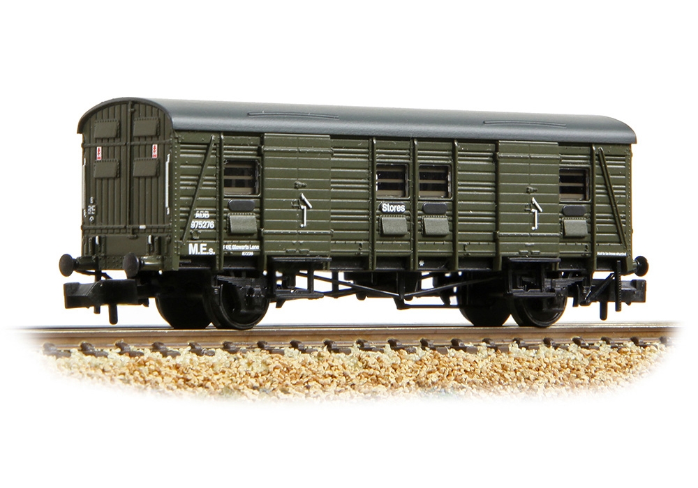 The Covered Carriage Truck was built by the Southern Railway and was known initially as the Van U or Van Utility. Sharing many aspects of its design and features with the Passenger Luggage Vans (PLV, later designated ‘PMV’ by BR), the CCTs differed by having a pair of full width doors at each end, allowing motor vehicles to be loaded and indeed the SR applied the code ‘Covcar’ to many examples, denoting their use as covered car carriers. In addition to transporting motor vehicles and carriages, the CCTs were used to convey all manner of parcels and general merchandise and being express rated, they could run at speed and were often included as part of passenger trains. Construction continued after Nationalisation, however the final examples built had plywood sides – by this time BR had designated them as Covered Carraige Trucks (CCT). These were large vehicles with a 21ft wheelbase and construction was from a metal frame with even planking on the sides and ends. The vans remained in traffic until the 1980s, with some surviving later still, in departmental use.