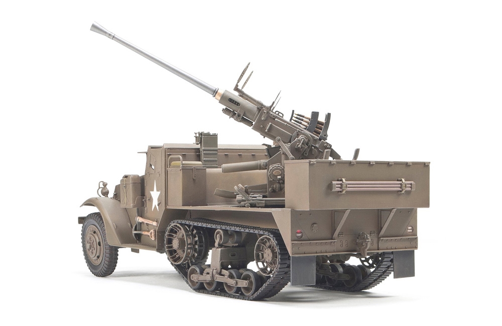 Doors can built open or closed, detailed engine and driving compartment. Injection moulded rubber tyres and track. Photo-etch parts. Adjustable-pitch 40mm AA gun can rotate 360°. Metal gun barrel included. Gun carriage can be built in the firing or hauling position. Authentic Korean War markings.