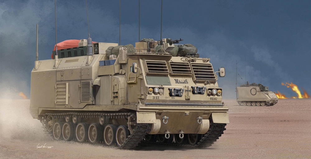 M4C2V self-contained tracked armoured command post with NBC protection, based on the Multiple Launch Rocket System (MLRS) carrier chassis derived from the M2