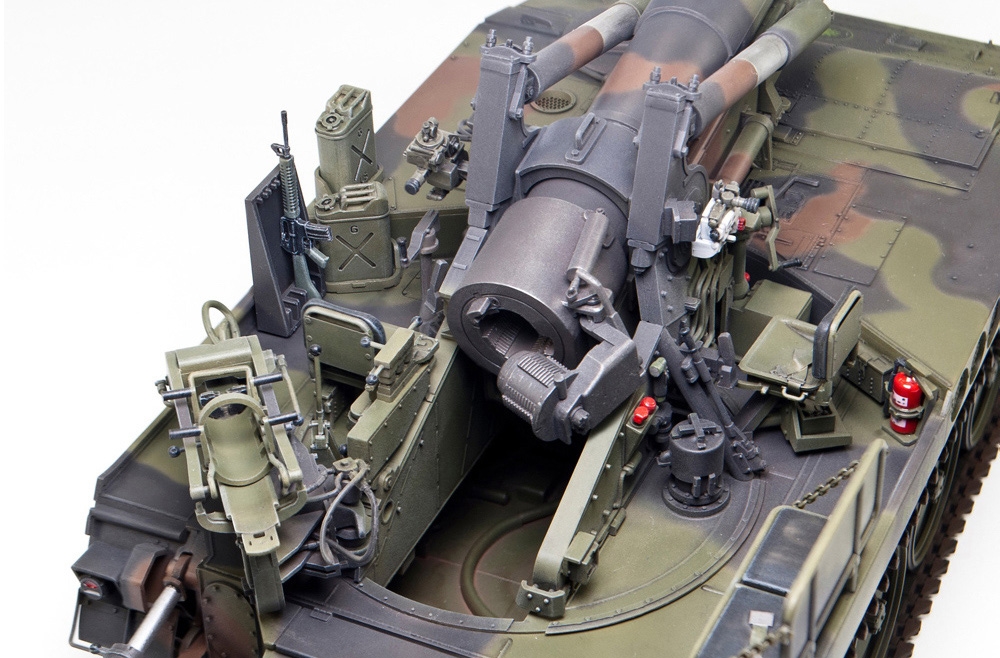 203mm howitzer with adjustable pitch angle. Comes with T65K2 & T91 rifles, plastic injection A2 barrel, cab interior structure and movable hatch. Choice of 8 markings/paint schemes. (155/203mm Howitzer Round & Stowage Case available separately, ref PKAF35017).