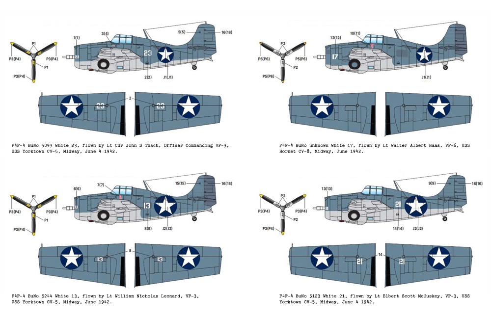 (2) F4F-4 BuNo unknown White 17, flown by Lt Walter Albert Haas, VF-6, USS Hornet CV-8, Midway, June 1942;