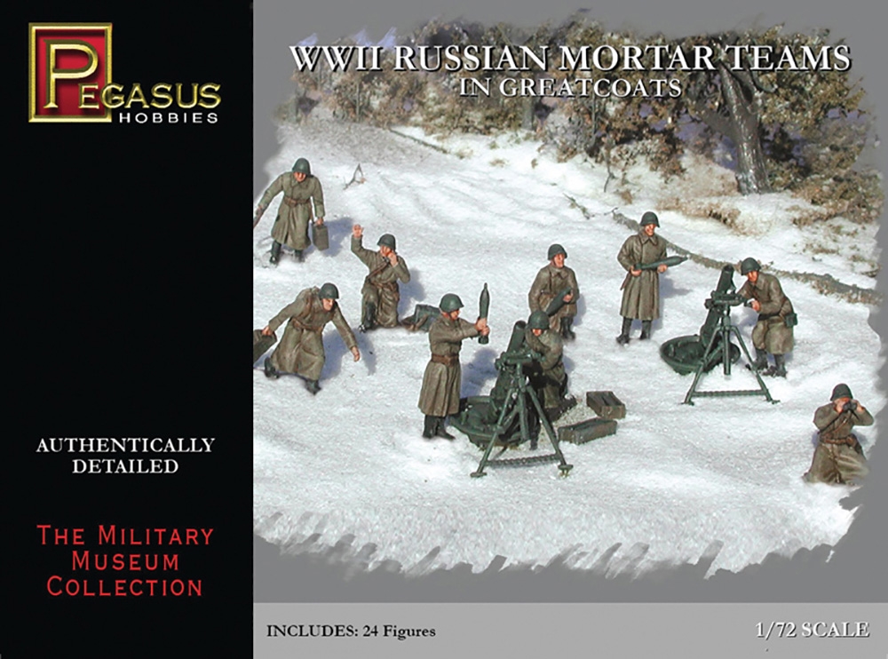 • WWII Russian Mortar Teams in Greatcoats• 1:72 scale unpainted plastic figures from Pegasus• Contents: 24 figures